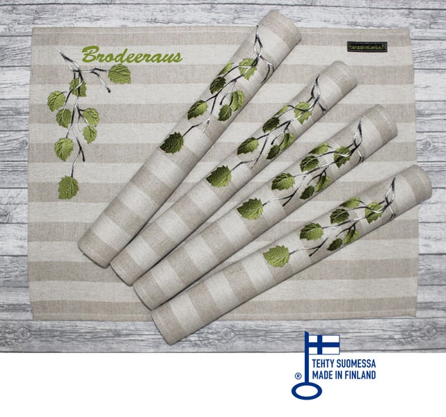 Pefletissä 45 x 60 cm on yksi koivunoksabrodeeraus vasemmassa laidassa,